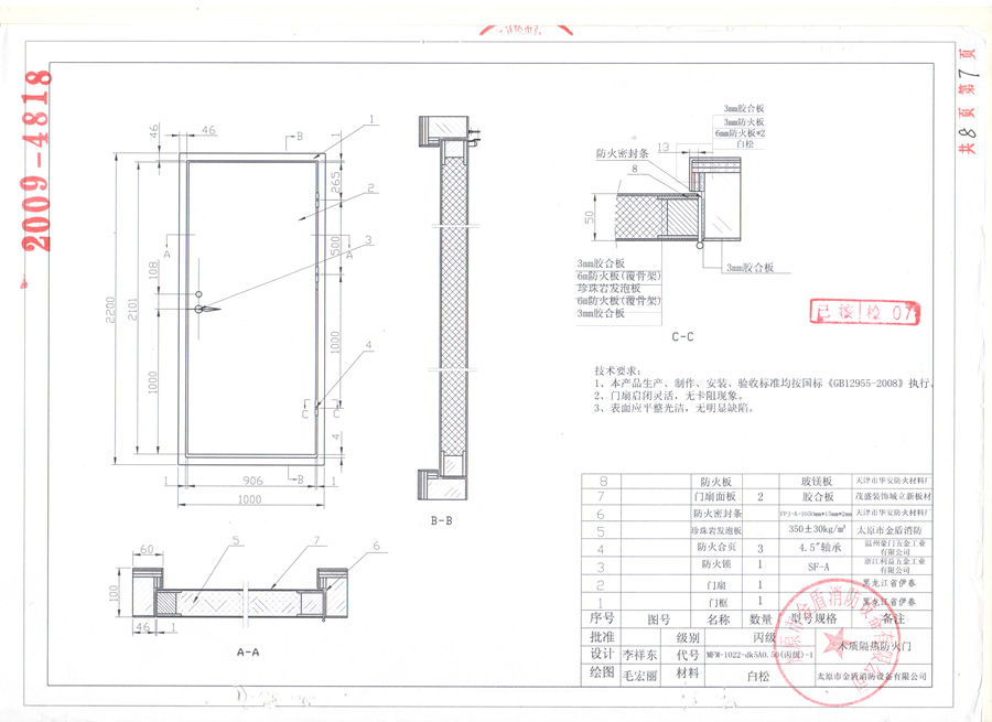 木質(zhì)丙級單開防火門