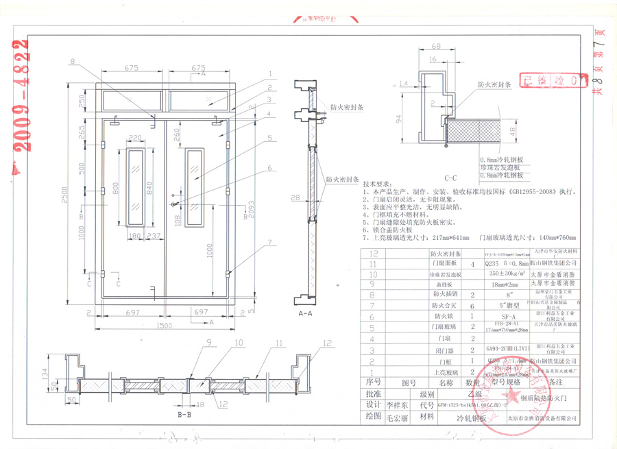 鋼質(zhì)乙級雙開防火門